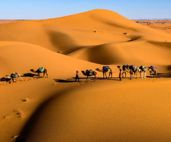 Later, enjoy another traditional dinner. Then, music, laughter, and stories fill the desert night. Finally, lie back and admire the bright Sahara sky. The stars here shine like nowhere else.