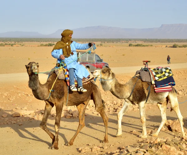 From here, the adventure truly starts. We drive off-road towards the majestic dunes of Erg Chigaga.
